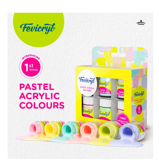 Fevicryl Multi Surface Pastel Acrylic Colours Kit 6 Shades X 15Ml | Ideal For Wood, Glass, Canvas, Metal, Plastic, Mould It | For Hobbyists, Artists, Diy Art And Craft
