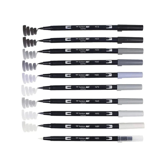Tombow ABT Dual Brush Pen set of 10, GRAYSCALE
