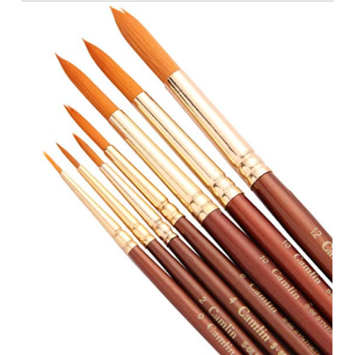 Camlin Synthetic Gold Hair Round Brushes (series 66)- Set of 7