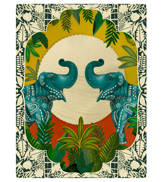 Royal Elephants Wall Art Print | Majestic Elephant Artwork | Colorful Jungle Wildlife Illustration Home Decor