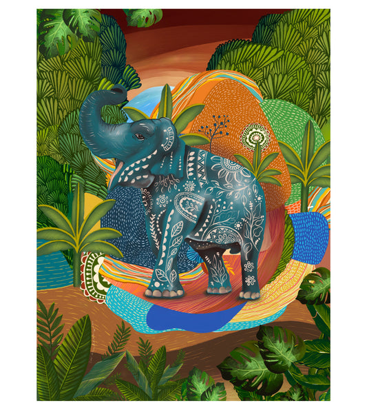 Jungle Elephant Wall Art Print | Vibrant Wildlife Artwork | Colorful Animal Illustration Home Decor