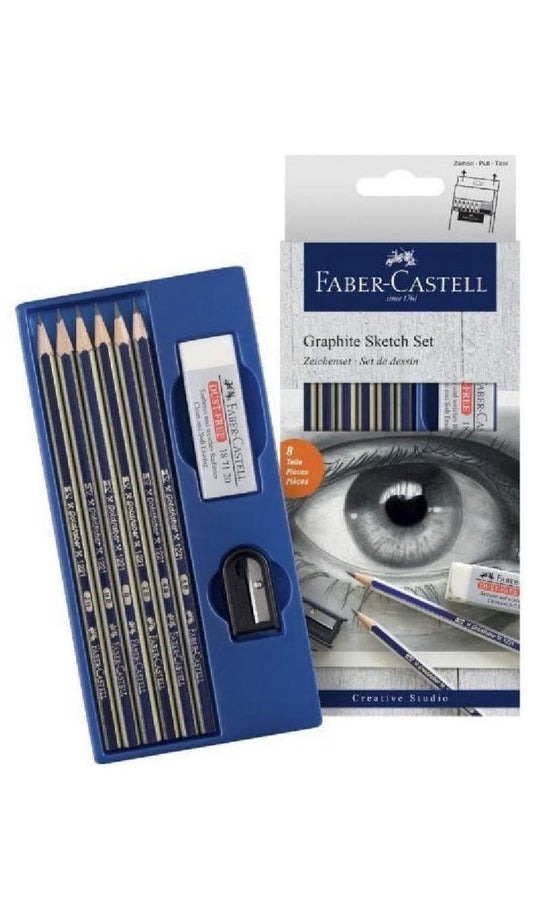 Faber-Castell Graphite Sketch Pencil with Sharpener and Eraser 6 Pencils with Sharpener and Eraser