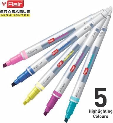 Flair Erassable Chisel Point Highlighter, Pack of 5 colours, Multicolor