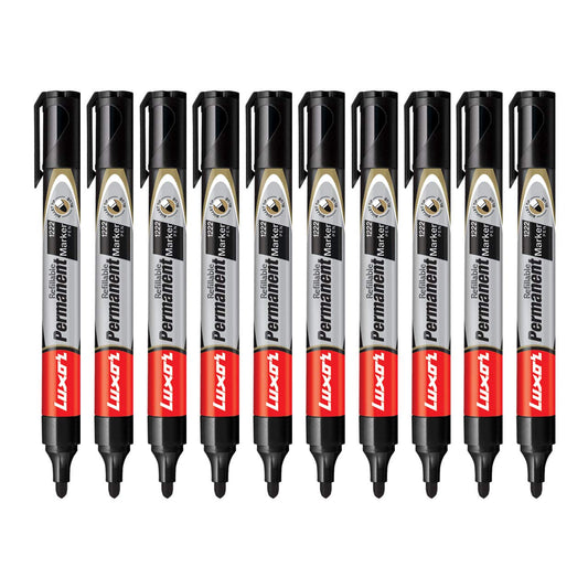 Luxor 1222 Refillable Permanent Marker - Black - Box of 10