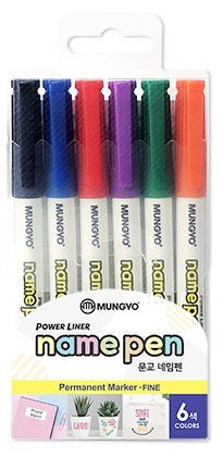 MUNGYO NAME PEN, 1.0MM FINE POINT PERMANENT MARKER, SET OF 6 ASSORTED COLORS
