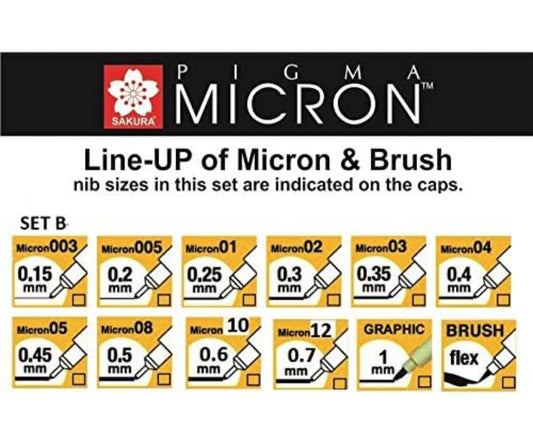 Sakura Pigma Micron Fineliners Set of 12 Assorted Nibs Black