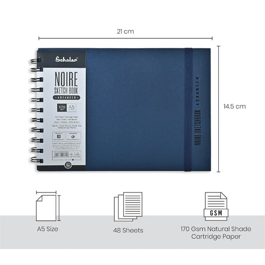 Scholar A5- 170 GSM Noire Sketchbook - Advanced (Wire Bound, 48 Sheets)