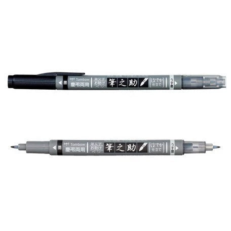 Tombow Fude Brush Pen, Fudenosuke,black&gray (GCD-121)