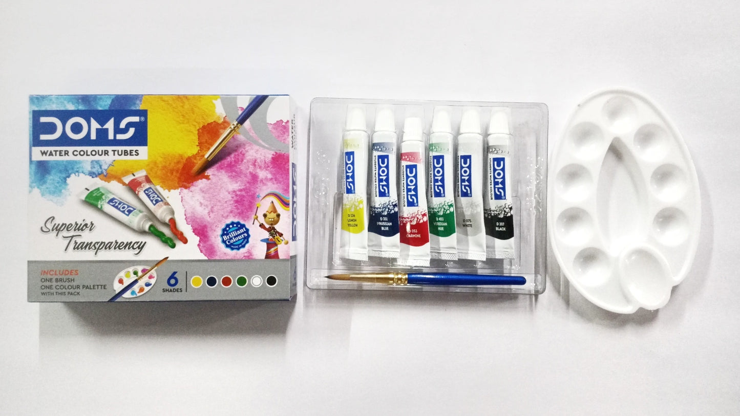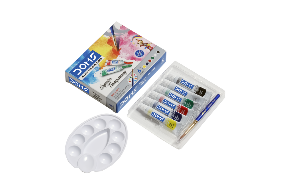 Doms Water Colour Tube Set in Cardboard Box (6 Assorted Shades, 1 Paint Brush & 1 Palette)